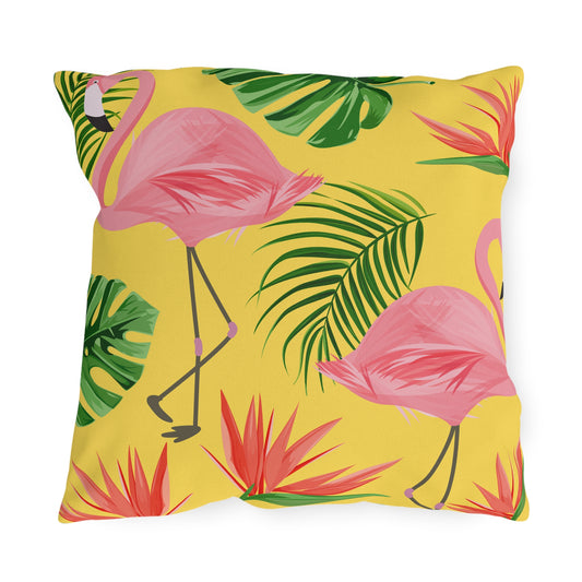 Flamingo Palms on Yellow Outdoor Pillows (FREE SHIPPING)