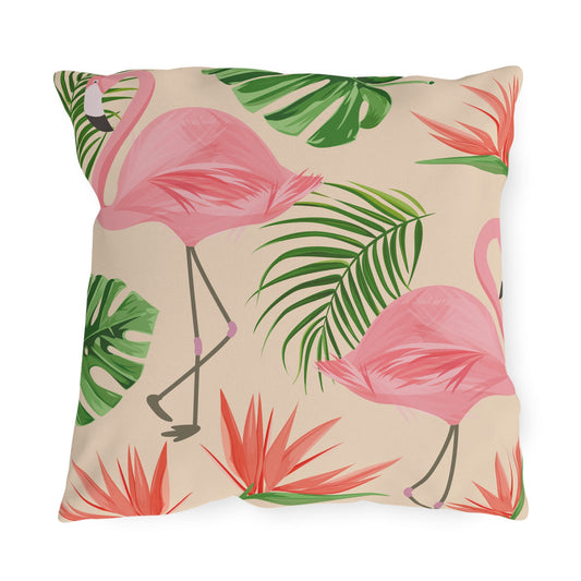Pink Flamingo with birds of paradise Pillow (FREE SHIPPING)