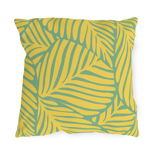 Palm Leaves Yellow Green Pattern Outdoor Pillow (FREE SHIPPING)