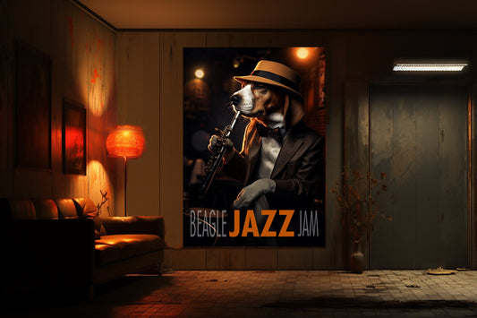 Jazz Club Beagle playing the Saxophone Digital Poster