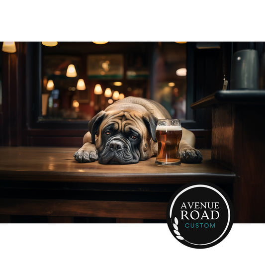 Bull Mastiff Hungover at Bar, Digital Poster