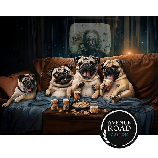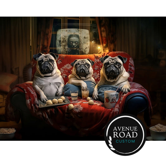 Pugs Pups Scary Movie Night Digital Poster
