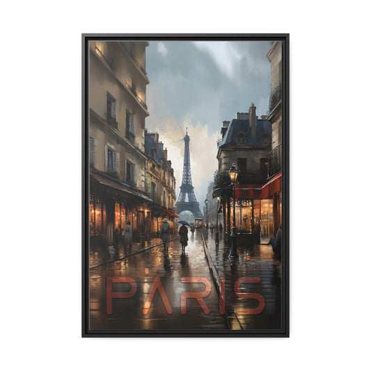 Rainy Night in Paris Framed Print on Matte Canvas Wall Art (FREE SHIPPING)