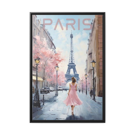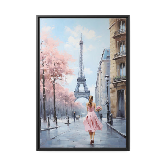 Pretty in Pink in Paris Eiffel Tower Framed Print on Canvas Wall Art (FREE SHIPPING)