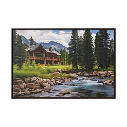 Log Cabin Nature-scape Wall Art, Print on Framed Matte Canvas (FREE SHIPPING)