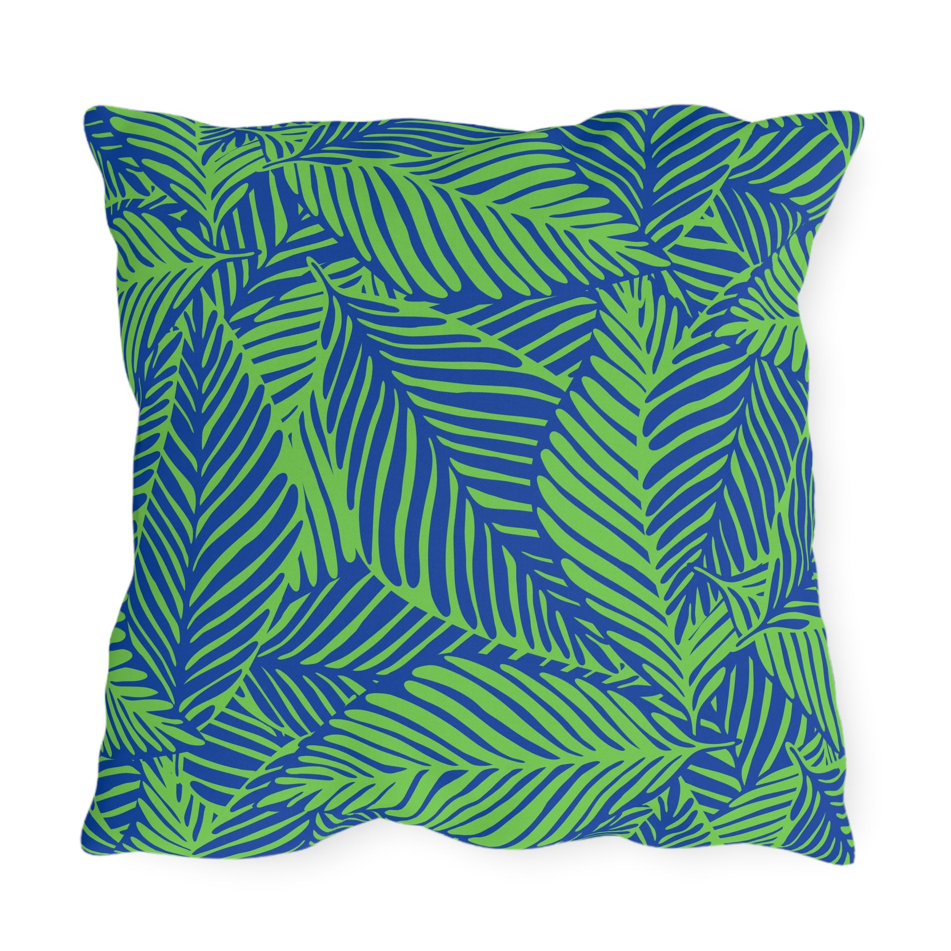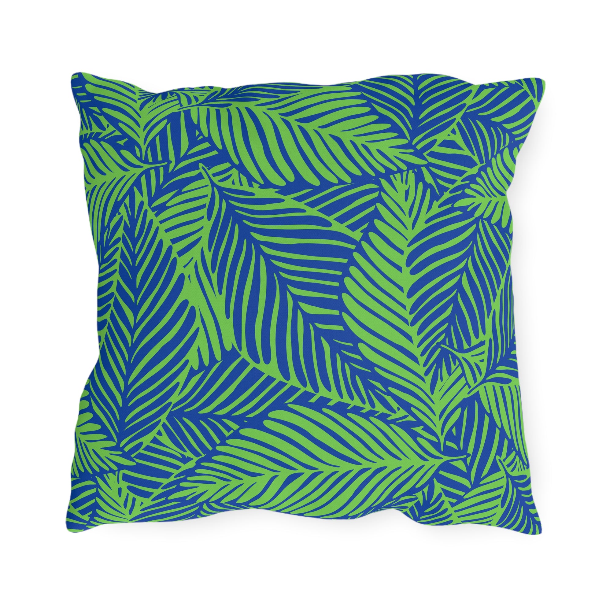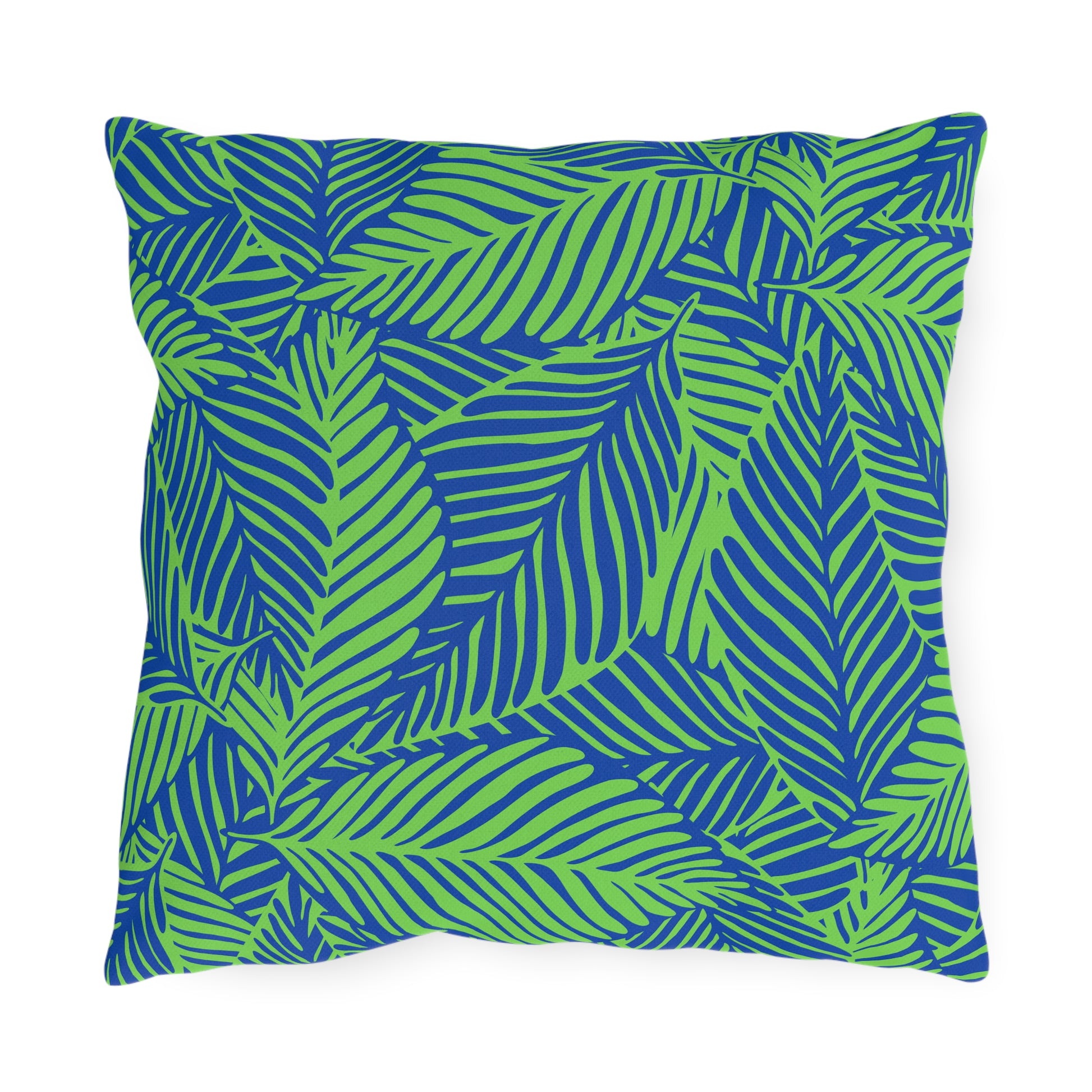 Transform your outdoor space with our Green Blue Leaves Outdoor Pillow, featuring a lush tropical leaf pattern that exudes vibrant charm. This stunning design, with its rich green and blue hues, is perfect for enhancing patio furniture and adding a colorful touch to your home décor. Crafted for durability, this pillow withstands the elements while offering comfort and style. Ideal for both outdoor and indoor settings, it serves as a versatile and eye-catching accent piece that brings a refreshing, tropical vibe to any environment.
