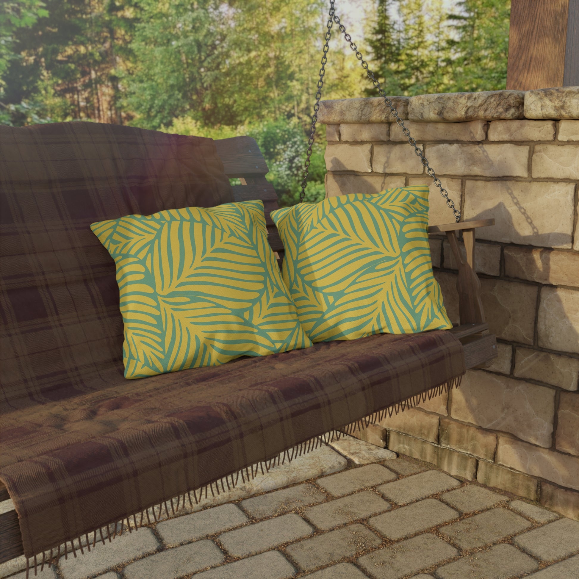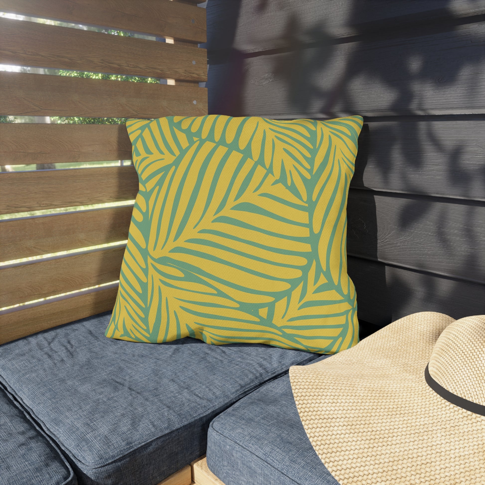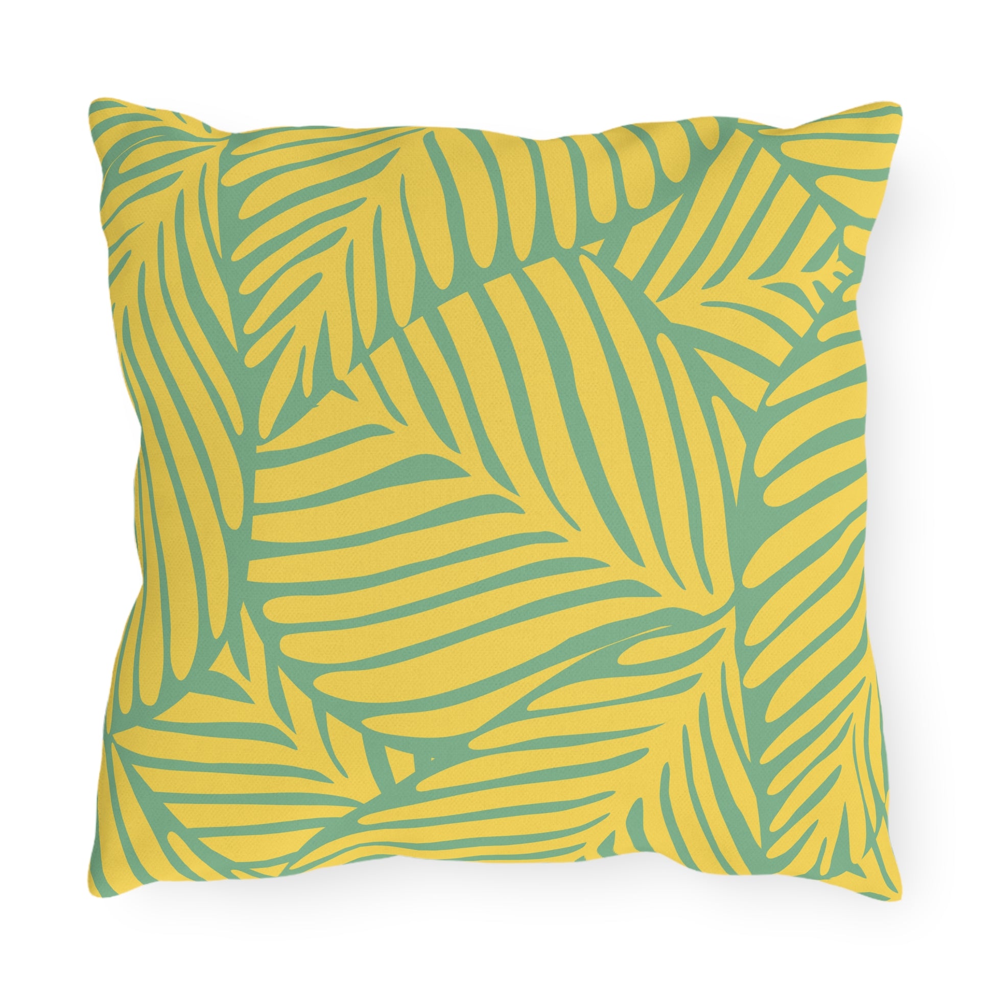 Palm Leaves Yellow Green Pattern Outdoor Pillow (FREE SHIPPING)